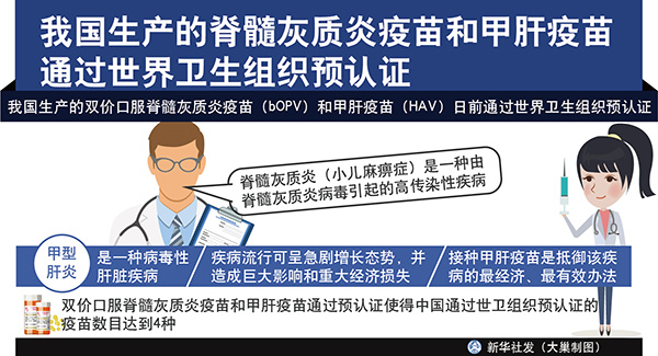 圖表:我國生產的脊髓灰質炎疫苗和甲肝疫苗通過世界衛生組織預認證 新華社發 大巢制圖