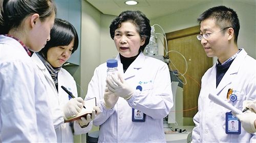 ????李蘭娟院士(右二)和團隊在實驗室工作。 (資料圖片)