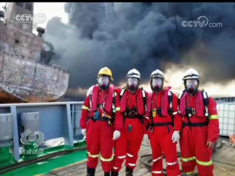 交通運輸部東海救助局救助指揮處處長蔣文輝說:”除了前面當時現場前頭一號艙跟首間艙的位置,后面整個都是在燃燒、爆炸以及濃煙覆蓋中,包括我們后面的那個生活區,整個在爆炸和燃燒、濃煙中。“