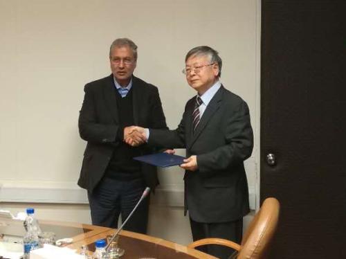 伊朗官員將感謝信交與中國駐伊朗大使龐森。來源:中國駐伊朗大使館