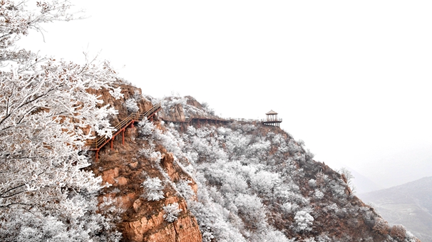 河南魯山阿婆寨景區現霧凇景觀