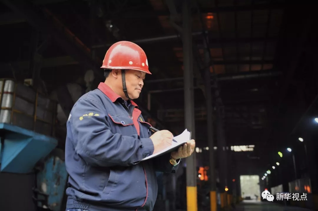 ↑華翔精密熔煉工程師池躍峰在車間門口記錄(2017年11月1日攝)。他是一位在熔煉行業30多年的老鑄工。新華社發(楊晨光 攝)