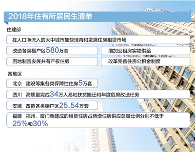 2018年,一系列措施將助力補足租賃短板:在人口凈流入的大中城市加快培育和發展住房租賃市場,推進國有租賃企業建設,充分發揮對市場引領、規范、激活和調控作用;同時,支持專業化、機構化住房租賃企業發展,加快推進住房租賃立法,保護租賃利益相關方合法權益。