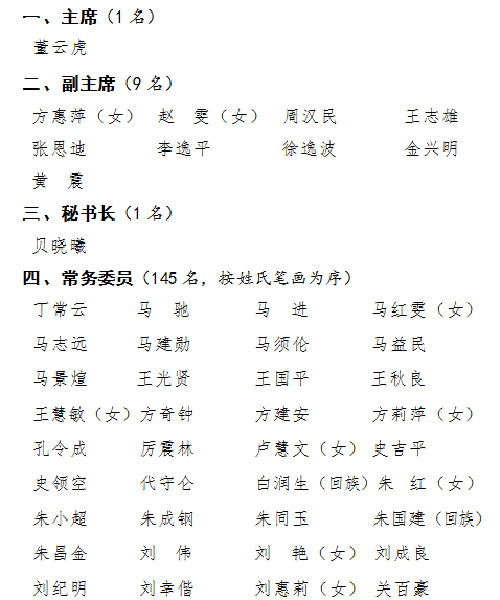 主席、副主席、秘書(shū)長(zhǎng)和常務(wù)委員名單