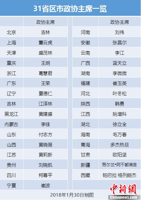 附:31省區市政協主席一覽
