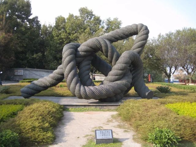 雕塑前一塊石碑上刻著4句話:“一根粗大的繩索,一段曲折的歷史,一個覺醒的過程,一個崛起的時代?!彼囆g家的設計和4句注釋,寓意深刻,發人深思。