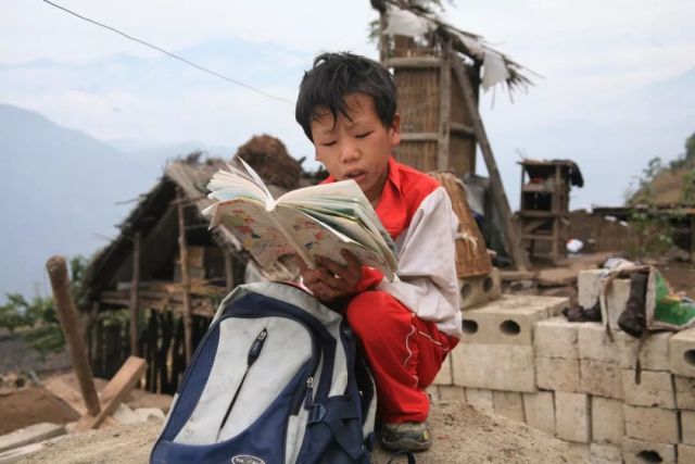 涼山州甘洛縣烏史大橋鄉,高山上的二坪村學生在家門口看書。新華社記者蔣作平攝