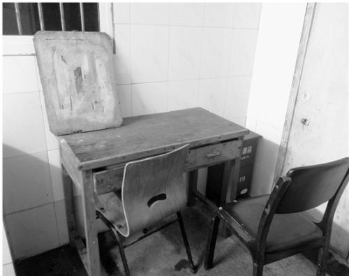 父子倆吃飯的桌椅。圖片來源:錢江晚報