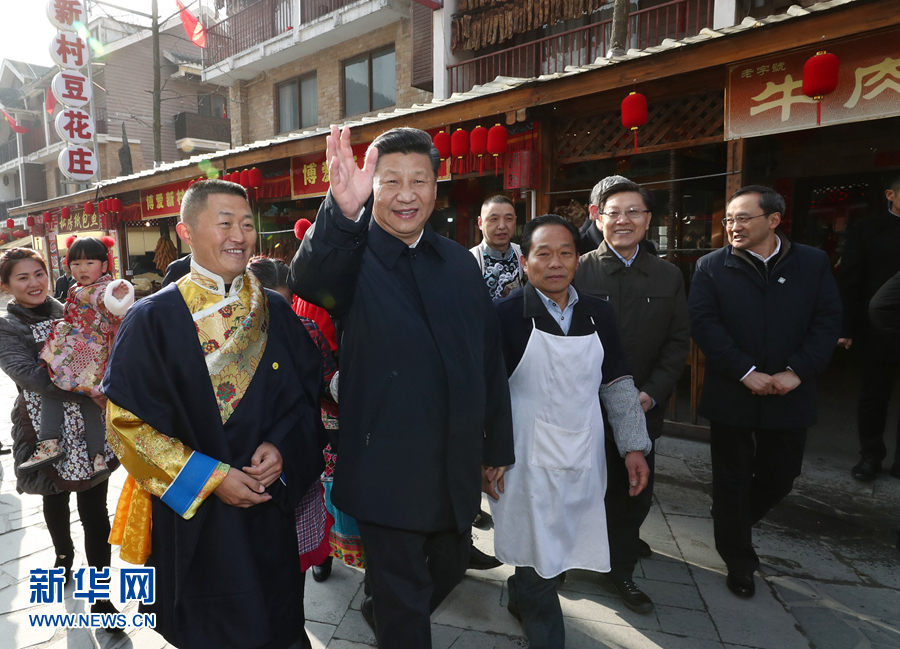 春節在即,村里照全家福、寫春聯福字、包湯圓等新春民俗活動豐富多彩。習近平每到一處,都駐足同群眾交流,他說:“我是人民的勤務員,讓人民過上好日子是我們共產黨人的初心、宗旨。”臨行前,村民們歡呼著簇擁上來向總書記拜年,習近平熱情同村民們打招呼,祝鄉親們安逸舒適、新春快樂、闔家幸福。