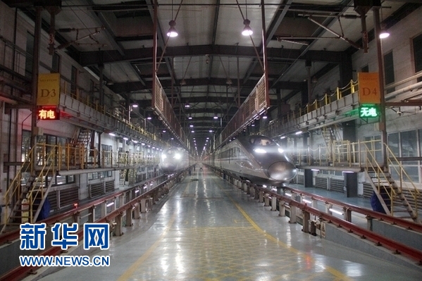 凌晨時分,石家莊動車運用所內依舊燈火通明。新華網 金佳緒 攝