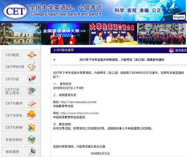 據全國大學英語四、六級考試委員會辦公室發布的通知,2017年下半年全國大學英語四、六級考試(含口語)成績今天發布!
