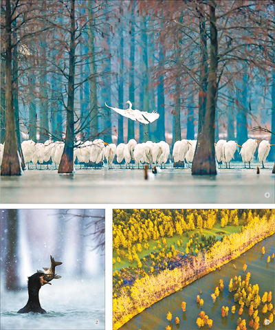 30多年過去,超千畝的池杉林早已扎根在這湖面上,形成了極為震撼的“水上森林”,不僅留住了水土,也引來眾多鳥類。“站立在池杉枝頭的是野生鸕鶿,這也是濕地最多的鳥類。野鴨、夜鷺、牛背鷺等也十分常見。”來安縣雷官鎮(zhèn)黨委書記程永政說,濕地內(nèi)共有鳥類98種,而植物及魚類、兩爬類也十分豐富,從而構(gòu)成了一個(gè)完整的生態(tài)系統(tǒng)。