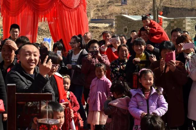 2月23日,在山西省永和縣奇奇里村,村里的老老少少在觀看馮文忠的婚禮儀式。新華社記者 曹陽 攝