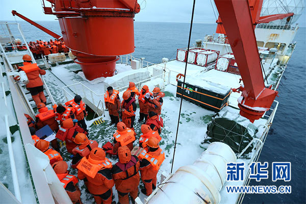 中國南極科考隊舉行應急消防棄船演練