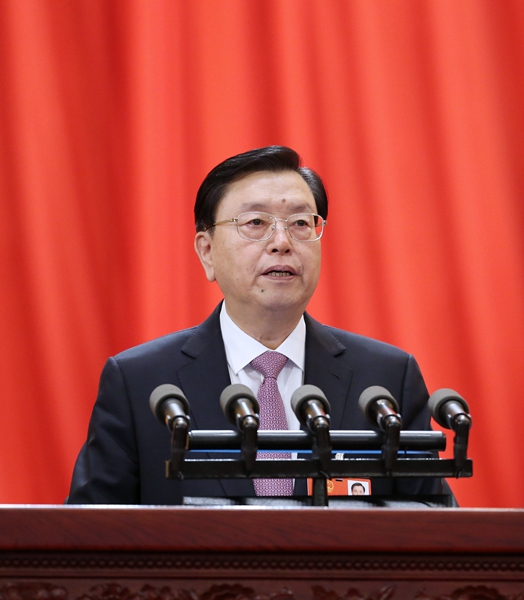 3月11日,十二屆全國人大常委會委員長張德江向十三屆全國人大一次會議作《全國人民代表大會常務委員會工作報告》。 新華社記者 姚大偉 攝