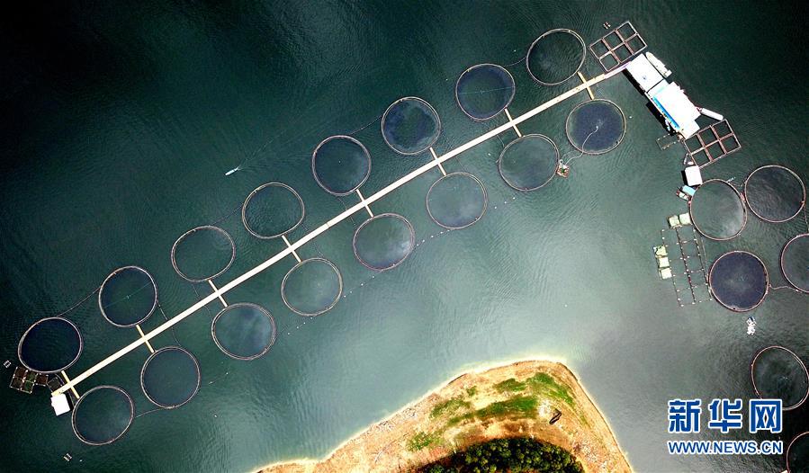 這是無人機拍攝的天生橋庫區紅水河水面上養魚的網箱(3月28日攝)。春耕春種時節,在廣西隆林各族自治縣天生橋庫區,當地農民發展的水上養魚場景與紅水河兩岸景色交相融合,構成一幅幅美麗的春日畫卷。新華社記者張愛林攝