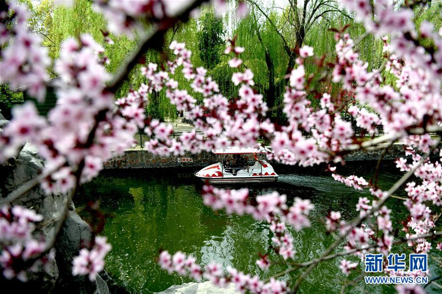 3月28日,游客在鄭州市人民公園泛舟。春天的鄭州氣象更新、萬(wàn)物復(fù)蘇,在春意盎然的人民公園內(nèi),游人乘輕舟暢游賞花,享受美好春光。 新華社記者朱祥攝