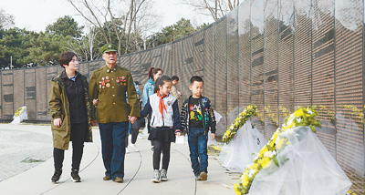 清明節前夕,來自浙江寧波、陜西西安和咸陽、遼寧沈陽和錦州的部分抗美援朝烈士親屬和志愿者在抗美援朝志愿軍老戰士的帶領下,來到沈陽抗美援朝烈士陵園緬懷、悼念革命先烈。辛陽 樊洪波 影報道