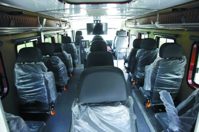例如云南邊防某團裝備的“野?!敝匦脱策壾嚕捎蒙虅哲囈粯拥臋M排乘坐方式,在行進中觀察或是射擊都非常方便。它可以一次搭乘17名全副武裝的士兵,車身上還有機槍支架平臺、北斗定位系統、實時通訊系統、監控和圖像傳輸系統??紤]到邊防官兵要長時間在野外巡邏,車上飲用水、凈水機、廚房和衛生間等設施一應俱全。它能讓邊防官兵在惡劣的自然條件下吃上熱飯菜,喝上干凈的水,對于戰士們保持體力,更好地完成任務大有幫助。