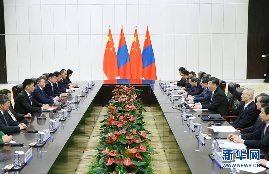 習近平指出,中方始終將中蒙關系放在周邊外交重要位置。我們將推動建設人類命運共同體,繼續按照親誠惠容理念和與鄰為善、以鄰為伴的周邊外交方針,深化同蒙古國的關系。當前,中蒙關系處在新的歷史階段。雙方要本著互信、合作、共贏原則,抓住機遇,推動中蒙全面戰略伙伴關系向前發展。