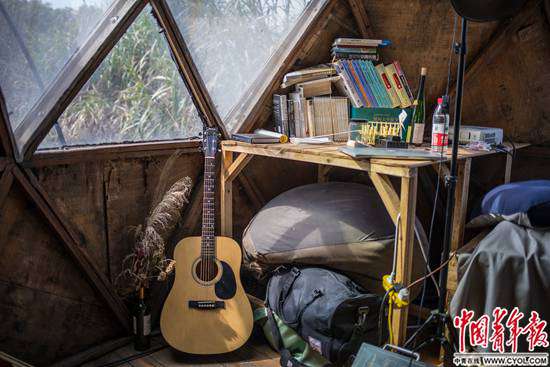 早在2011年,面對城市的高房價和霧霾,22歲的唐冠華就開始思考一種主流之外的生活方式。很快,從事廣告設計和理財分析工作的唐冠華和邢振先后離職,在青島嶗山的山林中建立了“自給自足實驗室”,盡量不使用與不可持續能源相關的工具,獨立生活了5年。