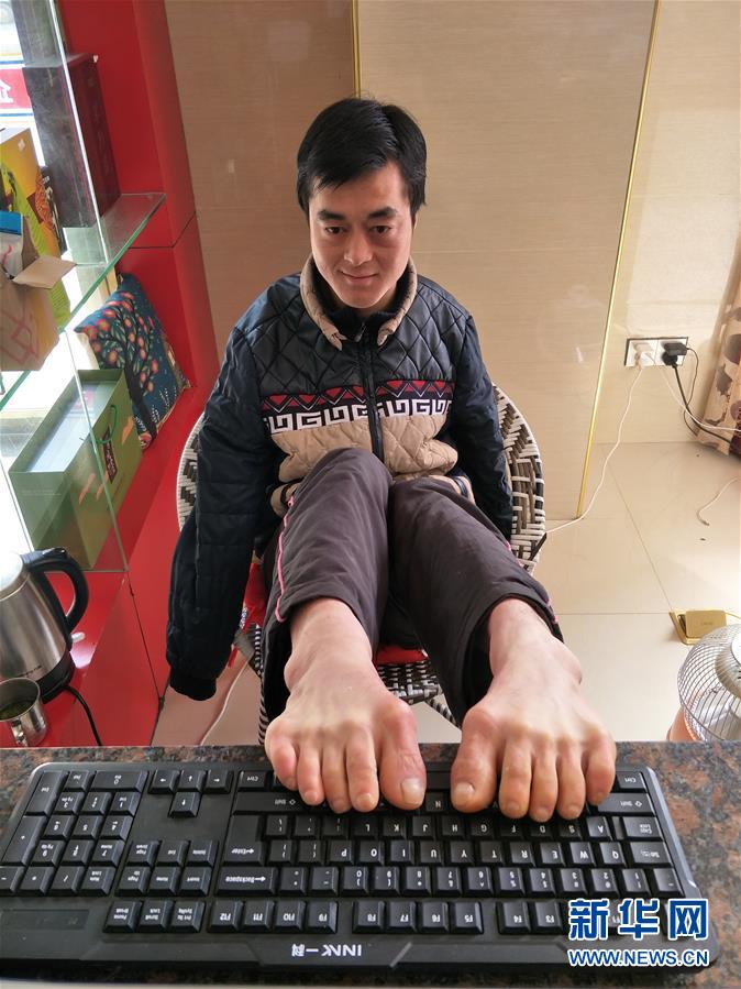 “從剛開始用一個一個腳指頭練習‘敲’鍵盤,到現在的十根腳趾都能用上了,證明只要努力了,就沒有做不到的事兒……”他在微信朋友圈里這樣說。