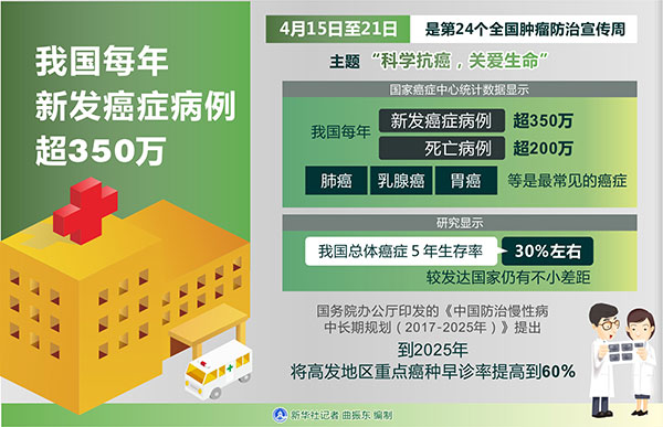 圖表:我國每年新發(fā)癌癥病例超350萬 新華社記者 曲振東 編制
