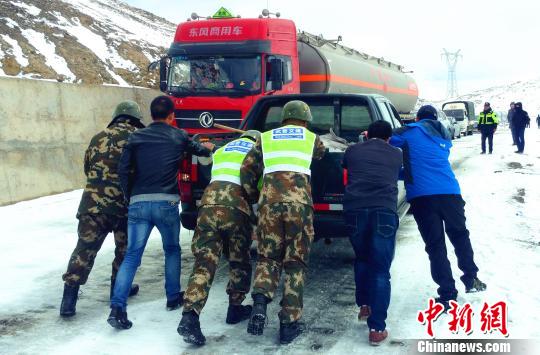 暴雪致川藏線數百輛車受阻 武警某部緊急出動6小時搶通