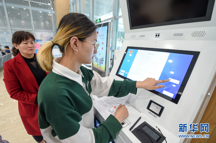 在南京市棲霞區商事登記服務大廳,市民用自動終端機辦理業務(3月29日攝)。新華社記者 李博 攝