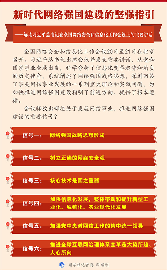 新華社北京4月21日電 題:新時代網絡強國建設的堅強指引——解讀習近平總書記在全國網絡安全和信息化工作會議上的重要講話