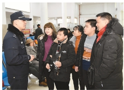二月九日,民警在僑鄉浙江青田火車站為歸國返鄉華僑介紹乘車安全注意事項。新華社記者 黃宗治 攝