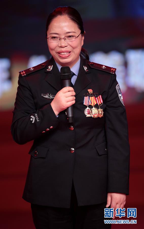 重慶市銅梁區公安局刑事偵查支隊三大隊大隊長楊發英在“最美職工”發布儀式上(4月25日攝)。新華社記者 才揚 攝