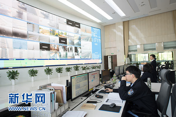 工作人員在杭州灣跨海大橋監控中心進行實時監控(4月19日攝)。新華社記者 翁忻旸 攝