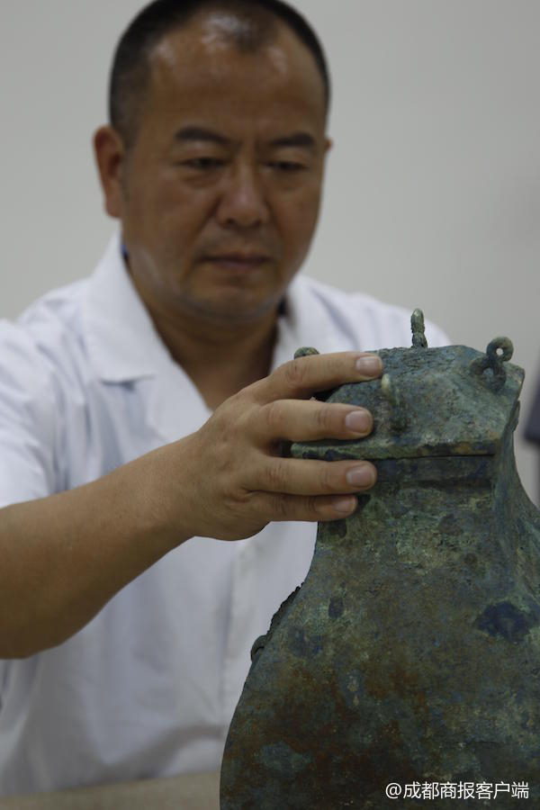 “是村民在挖沼氣池時發現的,我們是接到的電話后趕到現場,很多已經破碎。”旌陽區文管所所長鄧麗介紹,當時旌陽區孝泉鎮有一位村民家正在挖沼氣池,在施工過程中發現了發現一些青銅器,有壺、戈等。發現是文物后,當地村民主動給文化部門報告。