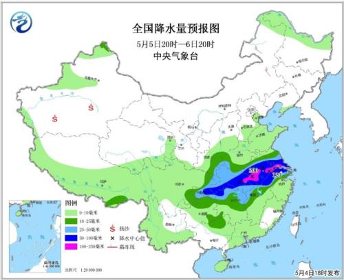 具體來看,預(yù)計4日20時至5日20時,西南地區(qū)東部、江漢東部、江淮等地的部分地區(qū)有大雨,重慶南部、湖北東北部和西南部、河南南部、安徽中部等地有暴雨(50~60毫米),局部地區(qū)有大暴雨(100~120毫米)。