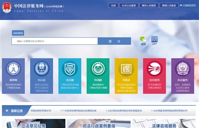 中國法律服務網(www.12348.gov.cn)由部、省級兩級平臺組成,包括門戶網站、微信公眾號和移動客戶端。記者從司法部發布會上了解到,中國法律服務網整合了38萬多家法律服務機構和139萬多名法律服務人員的數據,提供咨詢、查詢和征集等功能。