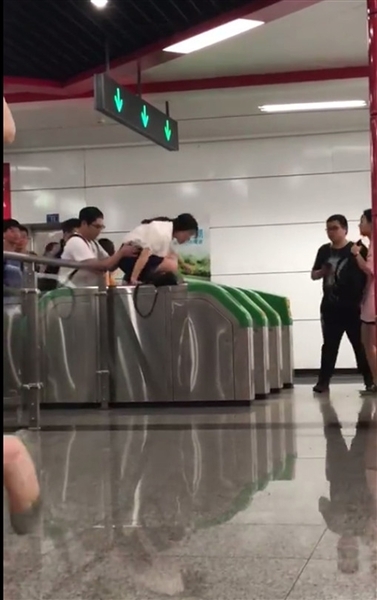 在非遺博覽園地鐵站翻越閘口的乘客 視頻截圖