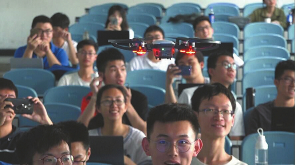 魏驍勇研發的人臉識別無人機出現在川大課堂。