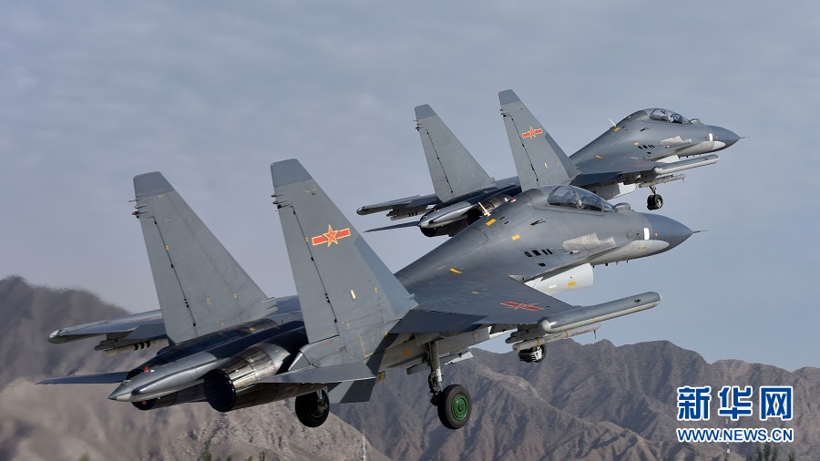 參加空軍“紅劍-2018”體系對抗演習的戰機聽令起飛(5月24日攝)。新華社發(溫志軍攝)