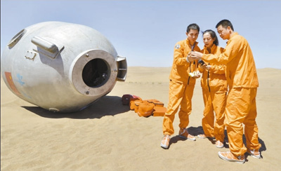 26日,在巴丹吉林沙漠參加野外生存訓練的15名航天員全部順利返京,標志著此次訓練取得圓滿成功。這是我國首次在著陸場區沙漠地域組織的航天員野外生存訓練。