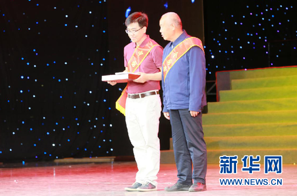 嘉賓為張延波(左)頒發(fā)道德傳家寶。 新華網 楊喜龍攝