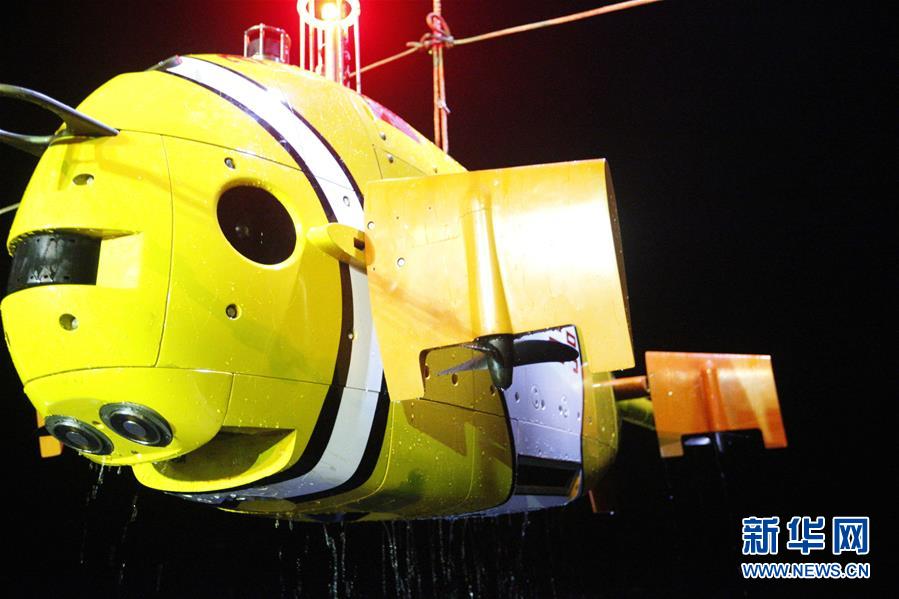 “海斗”號自主遙控水下機器人在西太平洋進行下潛實驗(2016年7月18日攝)。新華社發(沈陽自動化所提供)