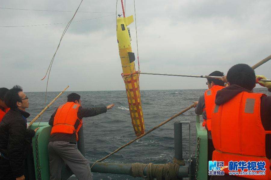 "海燕"號水下滑翔機在南海北部下海測試(3月16日攝)。