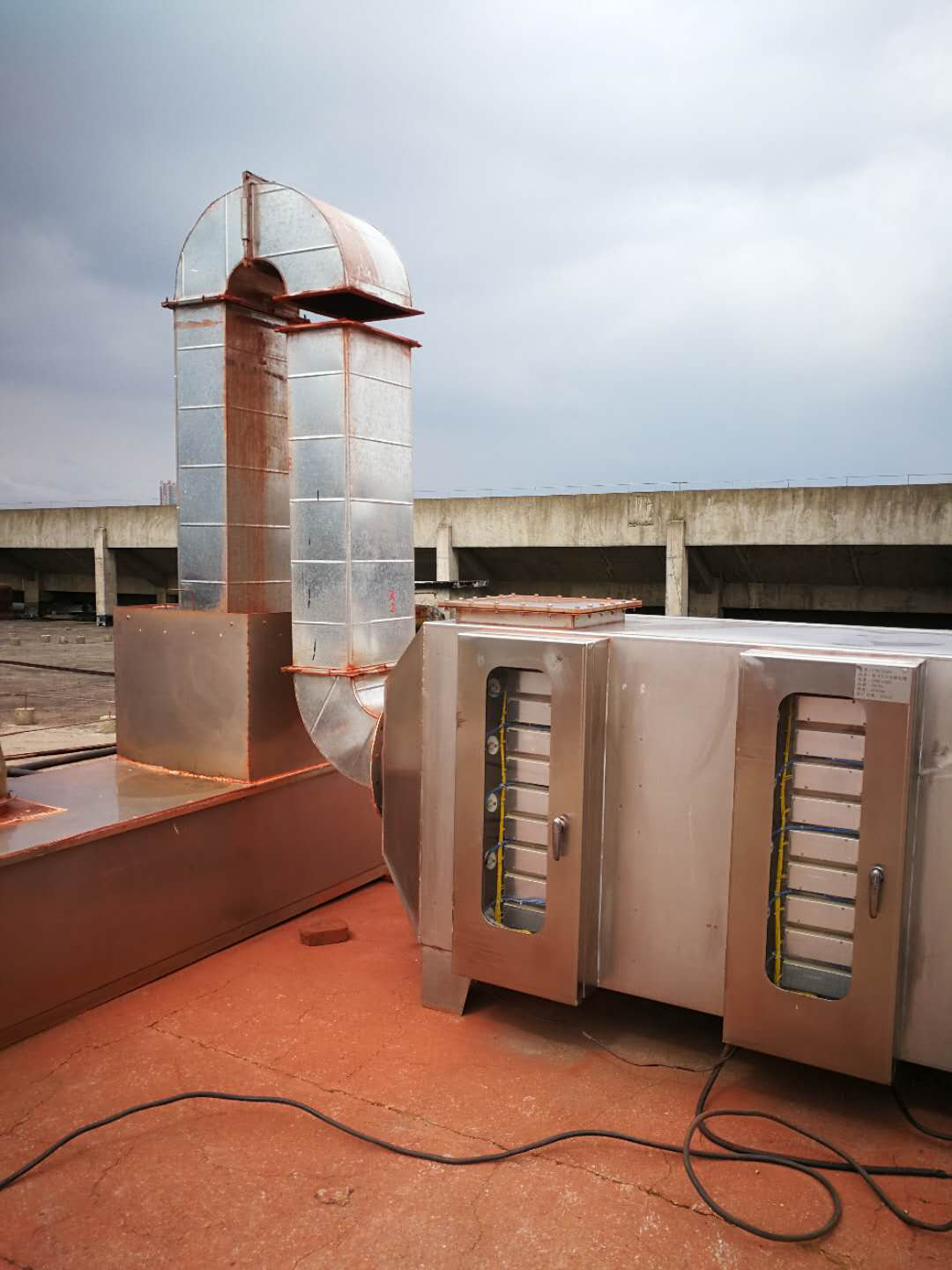 圖為被江西匯仁藥業(yè)有限公司擅自截?cái)嗟腢V光催化塔進(jìn)氣管道