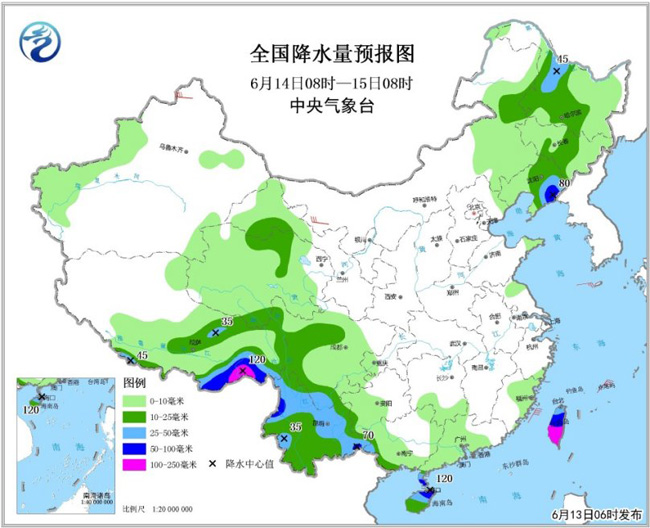 張濤:由于雨帶南移,南方強(qiáng)降水范圍已經(jīng)減小,因此中央氣象臺13日6時(shí)解除暴雨藍(lán)色預(yù)警,但預(yù)計(jì)13日8時(shí)至14日8時(shí),廣東南部沿海、廣西南部、云南西部和東北部、西藏東南部、四川西部等地有大雨或暴雨(50~90毫米),部分地區(qū)并伴有短時(shí)強(qiáng)降水,局地有雷暴大風(fēng)和冰雹。14日以后,廣東、廣西地區(qū)降雨整體減弱,華南地區(qū)降雨主要集中在雷州半島沿海一帶和海南中北部地區(qū)以及南海北部海面上。可能出現(xiàn)伴有短時(shí)強(qiáng)降水、雷暴大風(fēng)或冰雹等強(qiáng)對流天氣。