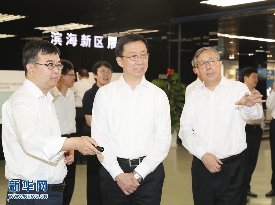 新華社天津6月20日電? 中共中央政治局常委、國務院副總理韓正6月19日在天津市調研京津冀協同發展工作。韓正前往天津市規劃展覽館,聽取天津市總體規劃及有關綠色生態屏障和濕地保護情況匯報;到科大訊飛人工智能產業示范基地,了解天津市加快建設全國先進制造研發基地和發展智能產業情況,察看企業在機器翻譯、智慧醫療、智慧教育等領域的最新研發成果;到天津濱海-中關村科技園,調研園區建設和企業落戶等情況,與入駐園區的企業職工互動交流;考察天津深之藍水下新視界科技有限公司、零氪科技(天津)有限公司,了解企業自主創新發展情況。