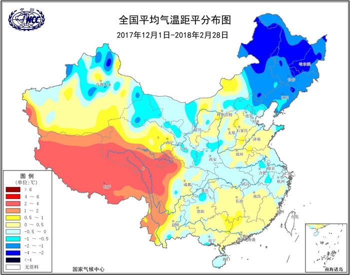 周兵:從氣候異常信號來看,我國于2017年10月-2018年3月出現一次弱的拉尼娜事件,一般拉尼娜對我國的直接影響就是冷冬,然而剛剛過去的冬季,全國平均氣溫-3.2℃,較常年同期(-3.4℃)還偏高0.2℃。雖然整體氣溫較常年平均偏高,但從氣溫距平分布來看,除青藏高原大部氣溫較常年同期偏高2~4℃外,全國其余地區氣溫接近常年或偏低,其中東北及內蒙古東北部、新疆北部等地偏低1~2℃,局地偏低2~4℃。