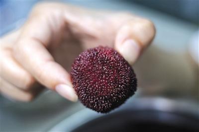 記者將一顆楊梅掰開,在紫紅色的果肉中,一條小白蟲靈活地扭動,試圖藏入深處。之后,一位同事將這顆楊梅吃下,表示口感正常,沒有出現奇怪的味道。事后該同事稱,當晚沒有出現拉肚子等癥狀。