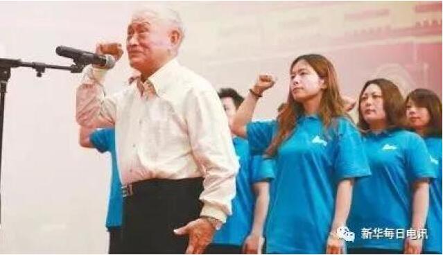 6月6日這天下午,在上千名中共黨員的見(jiàn)證下,耄耋之年入黨的“新兵”牛犇舉起右手、握緊拳頭,鄭重地向黨旗宣誓。