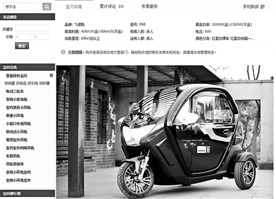如淘寶上一家電動車銷售商家就直言標注:“此車不能辦理牌照,也不需要駕照,請根據當地實際政策購車,不能因上牌問題退貨。”